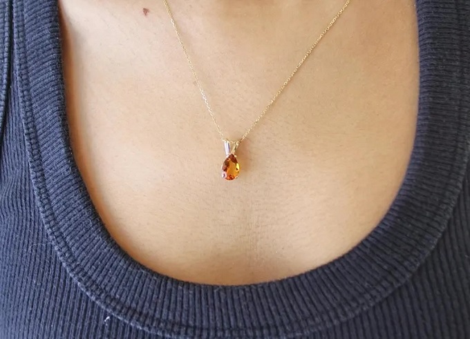 14K Yellow Gold Citrine Teardrop Pendant – Genuine Natural Birthstone | |