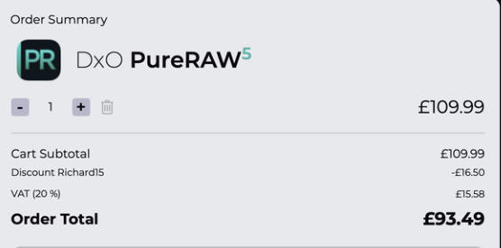 Use promo code Richard15 at checkout to get 15% OFF any DxO software. Save on powerful photo editing tools like DxO PhotoLab, Nik Collection, and more! ![]() | |