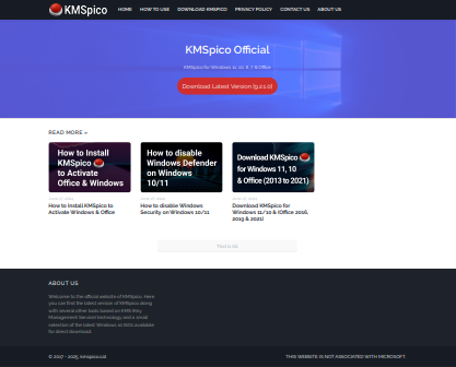 Welcome to the official website of KMSpico. Here you can find the latest version of KMSpico along with several other tools based on KMS (Key Management Service) technology and a small selection of the latest Windows 10 ISOs available for direct download. ![]() | |