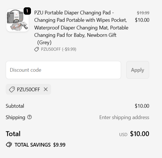 Use promo code: PZU50OFF at checkout to get 50% OFF the PZU Portable Diaper Changing Pad plus free shipping from PZU. ![]() | |