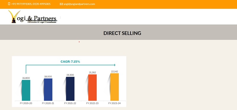 Looking for direct selling consultancy? Our team at Yogi and Partners have been deeply involved in the Direct Selling Industry and to our credit the majority of the top direct selling companies operating in India are our clients. All the direct selling companies who have entered India since 2015 (establishment of Yogi and Partners), were either advised for their India-entry strategy by Yogi and Partners or those who did not come through us have since engaged our services as their preferred legal partner. We have assisted our clients in setting up their businesses and expanding and conducting the already established business in compliance with Indian laws. For more details: Phone Number: +91 9971991005 0120-4995005 Address: 2207, Tower II, Express Trade Tower 2, Sector – 132, Noida Expressway, Noida 201 301 (UP), India Email: yogi@yogiandpartners.com Website: https://yogiandpartners.com ![]() | |