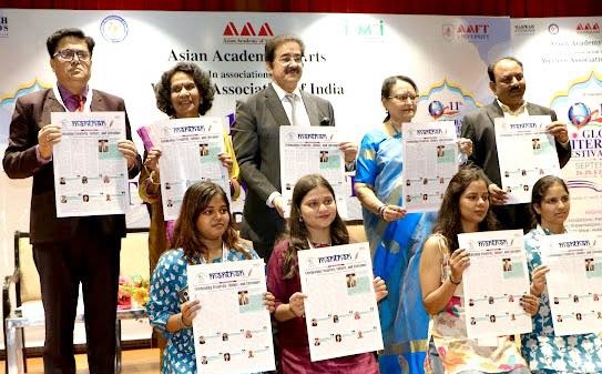 Noida, 26th September 2025: The Newsletter of the 11th Global Literary Festival Noida 2025 was formally released at Marwah Studios, Film City Noida. The newsletter has been prepared by the AAFT School of Journalism, reflecting the hard work and creativity of its students. The release ceremony was graced by renowned writers Nisha Bhargava and Pratibha Johri, along with Dr. Sandeep Marwah, President of Marwah Studios and Festival President, who jointly unveiled the publication before a large and enthusiastic audience of the literary festival. Speaking on the occasion, Dr. Sandeep Marwah praised the efforts of the students of the AAFT School of Mass Communication & Journalism, stating, “This newsletter is a vibrant record of everything that unfolds at the festival each day. It is not only a documentation of the events but also a creative showcase of the vision, preparation, and response that make this festival unique.” The first issue of the newsletter covers the formation of the festival, its preparations, and the overwhelming response from the global literary fraternity, while subsequent issues will bring daily updates on the sessions, book launches, cultural programs, and highlights of the festival. The initiative once again underlines the commitment of AAFT University to combine academic learning with live professional exposure, giving its students an edge in practical media and communication. ![]() | |