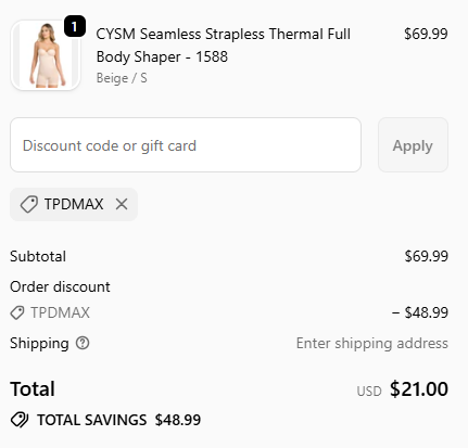 Use coupon code: TPDMAX and get UP TO 70% OFF your order from Shapewearusa. ![]() | |