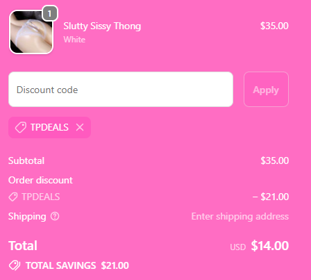 Save Up To 60% on your Sissy Panty Shop order with coupon TPDEALS. ![]() | |